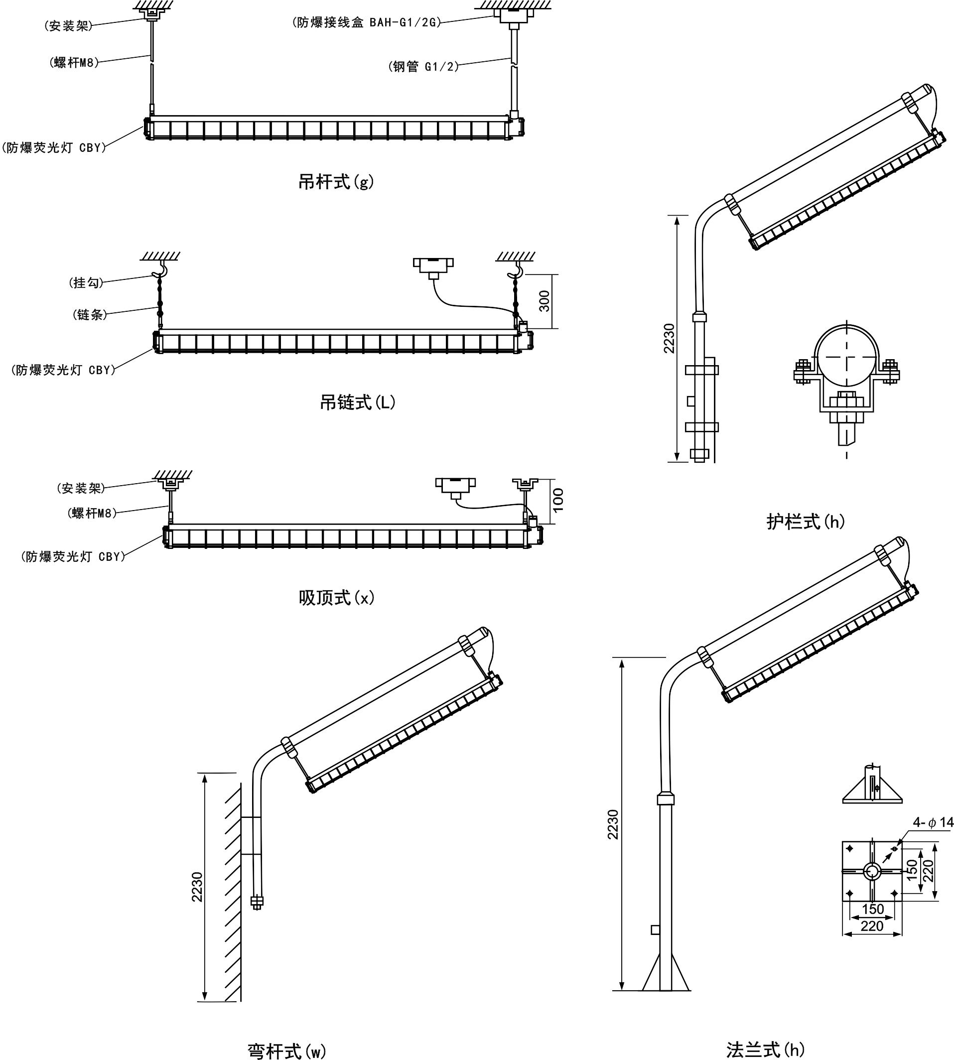 安装方式 | 吸顶式(X)、法兰式(F)、弯杆式(W)、吊杆式(G)、护栏式(H) |