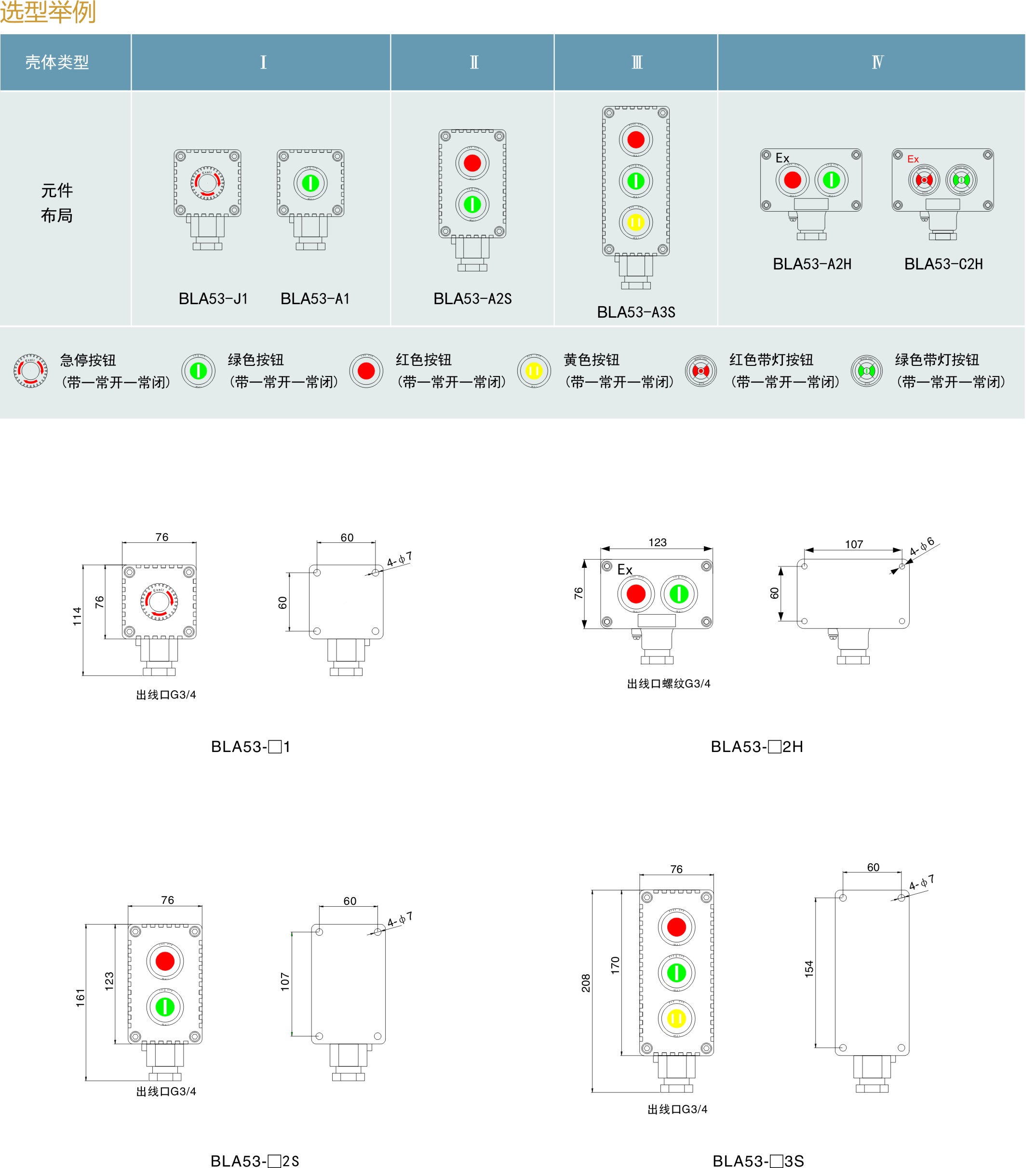 BLA53-J1 | 1常开、1常闭 | Ⅰ | 带1个急停按钮 |