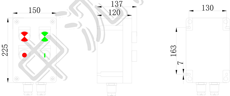 * 内装元件只要有:万能转换开关、按钮、电表、指示灯等,可按用户要求装其它仪表。可实现各种元件的任意组合,满足用户设计、要求。