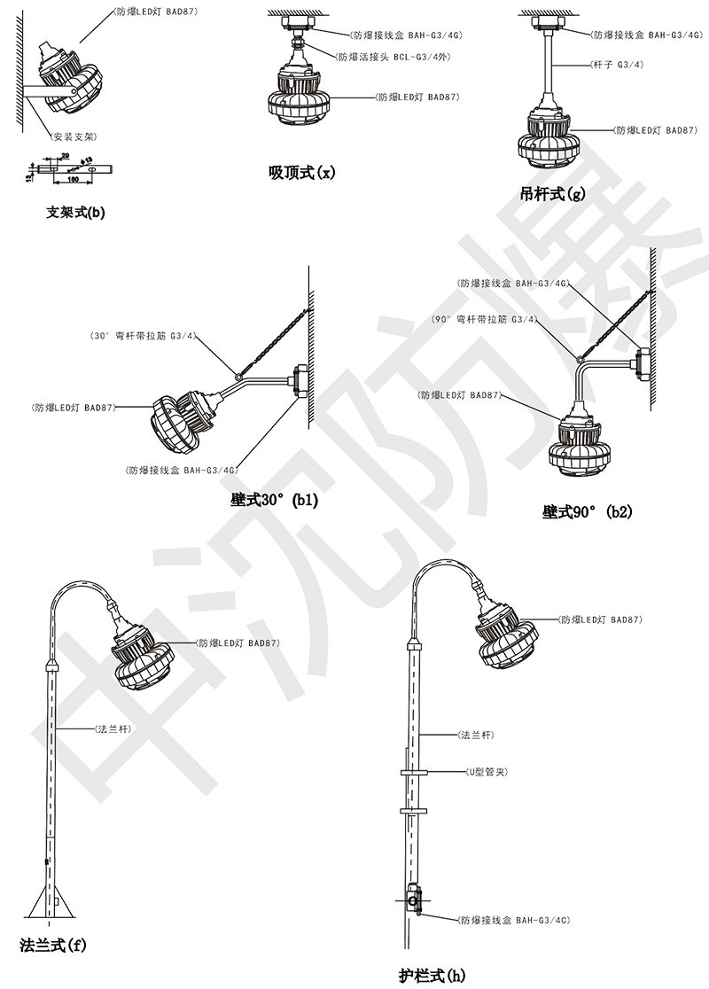 > 按照产品型号规格说明逐条选择并注明猫咪下载视频标志,例如:需要猫咪下载视频 LED 灯 50W 规格,吸顶式安装,则产品型号为 BAD87-50x ExdembⅡCT5 Gb。