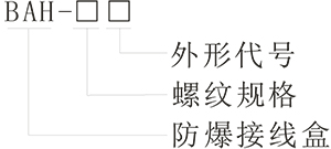 > 按照产品型号规格逐条选择并注明猫咪下载视频标志,螺纹规格,外形代号等参数要求,例如:需要ⅡB 隔爆型铸铝 G1″B 型接线盒,则产品型号为 BAH-G1″B ExdⅡBT6 Gb。